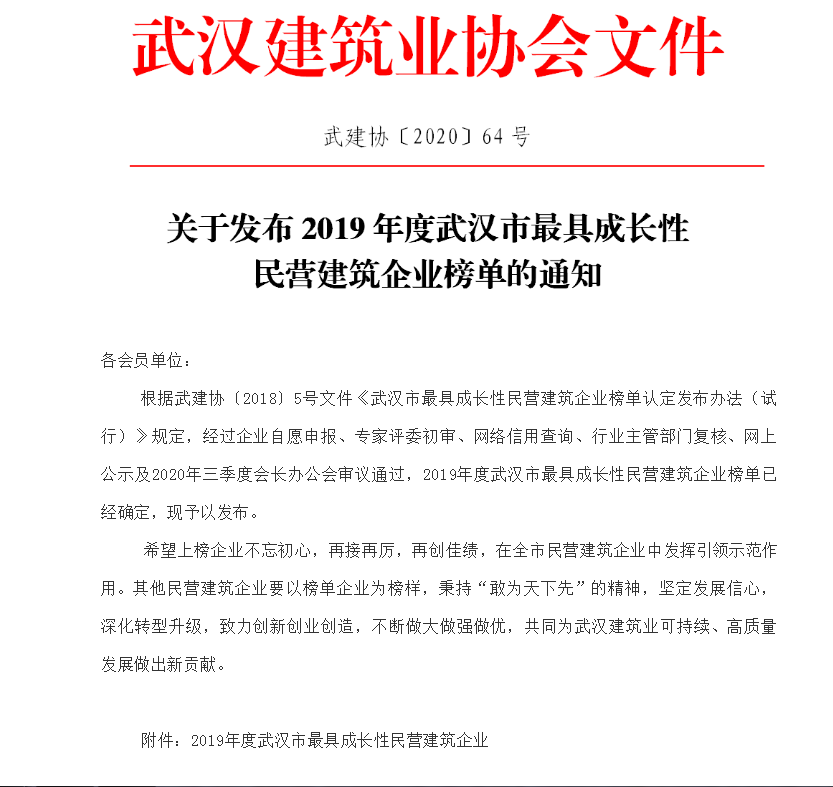 热烈祝贺武汉科正获得2019年度武汉市最具成长性民营建筑企业。